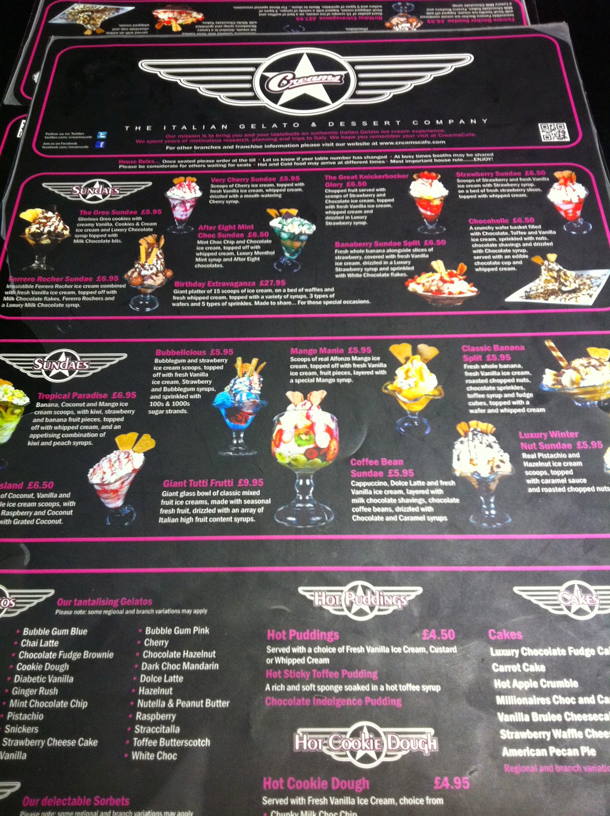 There was quite a lot to choose form on the menu - they even do waffles! (We saw someone else with the waffle and it was HUGE!! Definitely don't expect to stay on a diet if you come here!) We both opted to order sundae's and I placed the order at the till - it was about £12 for two.